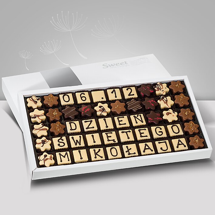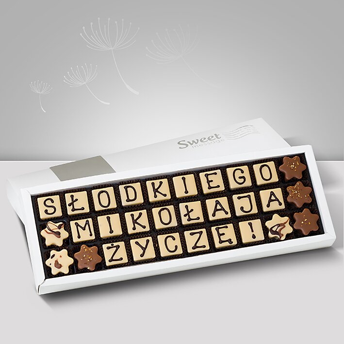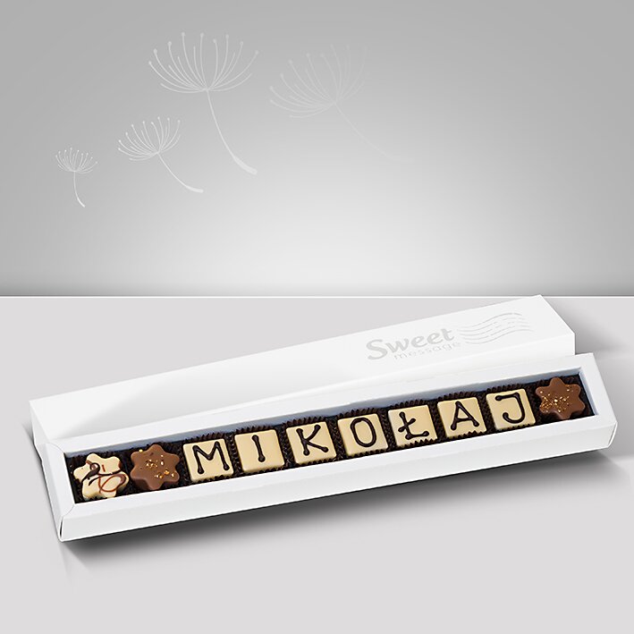 6 grudnia tuż tuż. To dzień, w którym wszystkie dzieci (i nie tylko!) wyczekują na Mikołaja. Pamiętajmy, że to nie tylko zabawki, to także dużo słodyczy. Co powiesz na spersonalizowany, czekoladowy prezent? Słodka wiadomość przekazana najbliższym z okazji Mikołaja to na pewno wyjątkowy prezent, który aż szkoda będzie jeść.